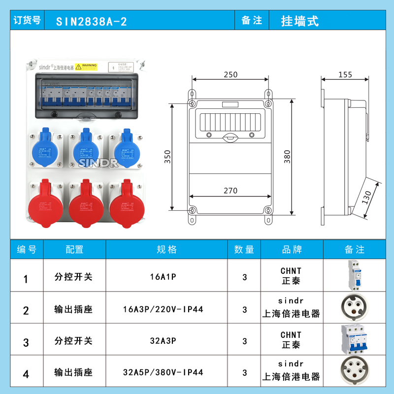 SIN2838A-2室外工业插座配电箱Wall mounted combination